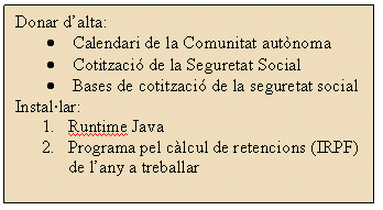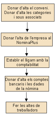 Iniciar la gestió de les nòmines Per a qualsevol ajuda relacionada amb l’aplicació, podeu utilitzar la del programa prement la tecla F1, del lloc que presenta dubtes. Com totes les aplicacions de Windows, disposa d’un menú "Ayuda", que permet de cercar per contingut o per paraules clau. També podeu cercar ajuda en l’adreça de la web del fabricant, que és la següent: www.gruposp.com.La gestió de personal és un concepte força ampli que comprèn diferents aspectes que fan referència a la gestió dels recursos humans dins una organització. Centrarem les activitats d’aquesta unitat en el càlcul de les nòmines dels treballadors de l’empresa. Abans de començar a treballar cal comprovar que l'aplicatiu "Nómina Plus", disposa del calendari de l'any que volem treballar, associat a la comunitat autònoma. També s'ha de comprovar que hi ha les taules de cotització de la seguretat social, així com les bases de l'any corresponent. Pel que fa al IRPF, és aconsellable, utilitzar el programa de lliure disposició que facilita hisenda el podeu baixar de http://www.aeat.es. El resultat del IRPF de cada treballador l'haurem de calcular i indicar de forma manual. A diferència de les altres aplicacions de "Sp Editores", en el cas del "NóminaPlus", és convenient, de donar primer el conveni, ja que tots els paràmetres que utilitzarà el programa per defecte seran d’aquest conveni. Els convenis estan tots actius independentment de l’empresa seleccionada. Abans de donar d’alta una empresa cal saber a quin conveni estan adscrits els treballadors, perquè en el moment que aquesta es creï es defineix el conveni al qual pertanyen i l’aplicació recull les dades de les categories i sous associats segons el conveni de què es tracti. L’ordre de treball, per tal de simplificar la creació d’una nova empresa que reculli les dades d’un conveni, és el següent: a) en primer lloc